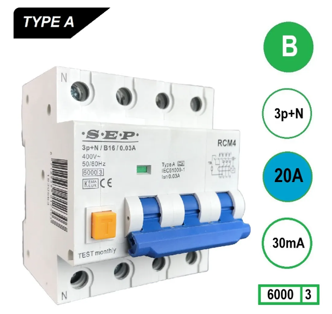 Aardlekautomaat 20A 3P+N 4 mod B kar 30mA