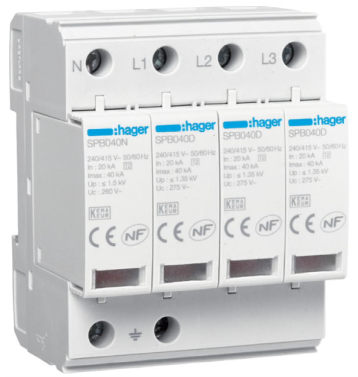 Korte beschrijving Overspanningsbeveiliging type 2 4P 40kA TT/TNS met defectindicatie + telegraaffunctie