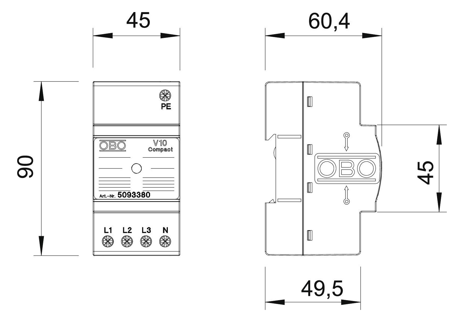 - afvoercapaciteit tot 60 kA (8/20) totaal