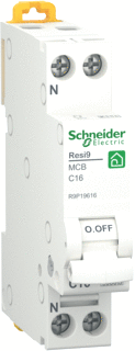 Deze installatieautomaat uit de Resi9 serie van Schneider Electric beschikt over 2 polen, waarvan er 1 beveiligd is (1p+n). Daarnaast heeft de installatieautomaat een nominale spanning van 230V, een nominale stroom van 16A en een uitschakelkarakteristiek C. Het kortsluitafschakelvermogen bedraagt 6kA. Verder heeft de Schneider Electric Resi9 installatieautomaat een inbouwdiepte van 44mm.