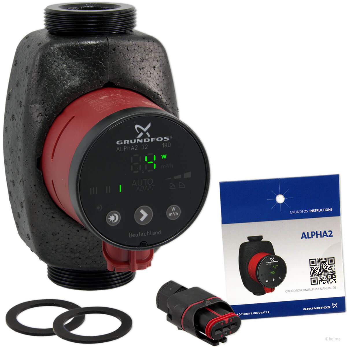 Met AutoAdapt en automatische nachtverlaging en optionele weergave van stroomverbruik of debiet. Elektrische aansluiting door middel van de ALPHA-stekker, al miljoenen keren bewezen. Synchrone motor met ECM-technologie en het hoogste rendement, hoog aanloopkoppel met overtrekbeveiliging en geïntegreerde volledige motorbeveiliging. Droogloopbeveiliging en opstartfunctie. Warmte-isolatieschaal inbegrepen in de levering.