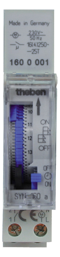 Modulaire timer zonder energiereserve, breedte 1 TE, segmentprogramma 24 uur, kortste schakeltijd 15 min, continu in-/uitschakelen
