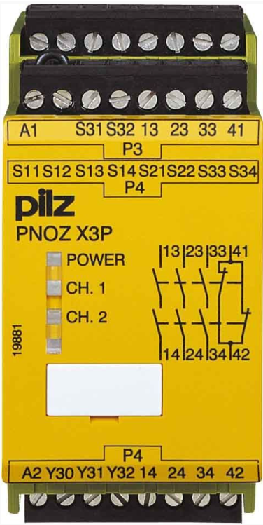 Veiligheidsschakelapparaat (standalone) Ingangen: 1/2-kanaals circuit met/zonder kruisstroomdetectie Uitgangen: 3S, 1Ö, 1HL. Automatische/bewaakte start UB 24V AC/DC, breedte: 45mm, steekveerklemmen. Bewaking van noodstop, veiligheidshekken.