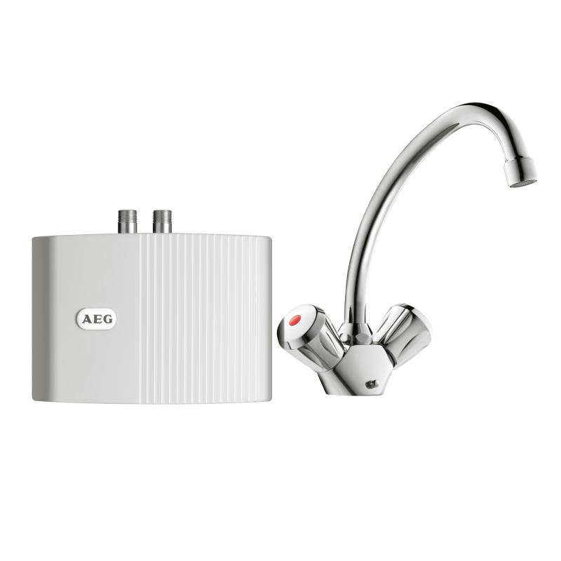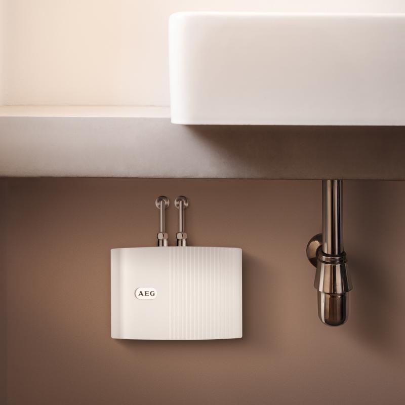 voor open bedrijfsmodus, Voor installatie onder en boven tafel. Ongevoelig voor kalk, verwarmingssysteem met blanke draad voor snelle opwarming. Met speciale straalregelaar. Vaste aansluiting. Waterstraalbescherming IP 25, kwaliteits- en veiligheidskeurmerken: CE-keurmerk, VDE/GS-keurmerk, radiografisch keurmerk / EMC, DIN AGI Hydraulisch geregelde mini-doorstroomverwarmer, open (drukloos) in exclusieve uitvoering. Voor de voorziening van één tappunt. Voor universele installatie boven en onder de tafel. Met blootdraads verwarmingssysteem geschikt voor kalkhoudend water. Apparaat compleet met muurbevestiging geïntegreerd in het achterpaneel. Metalen wateraansluitingen met aansluitkabel. Bij het openen van de kraan wordt het verwarmingsvermogen automatisch ingeschakeld en wordt het water verwarmd.