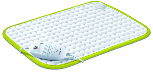 met zachte bekleding, wit, voldoet aan Oeko-Tex Standaard 100, wasbaar op 30C, afneembaar aansluitsnoer lengte 1,5m, snoerschakelaar met 3 verlichte schakelniveaus, automatische uitschakeling na ca. 90 minuten en Beurer veiligheidssysteem