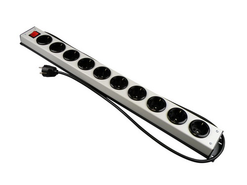 10 stopcontacten, aan en uit schakelaar en een snoer van 1,5mtr
