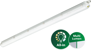 CORELINE WT120C Montagebalk Pendel, Langwerpig, 43W, LED 6000lm, 4000K, 230V, 1515x80x76mm, Afdekking Kunststof mat/gesatineerd, IP65, Waterdicht, IK08, UGR<25, Klasse I, Met lichtbron
