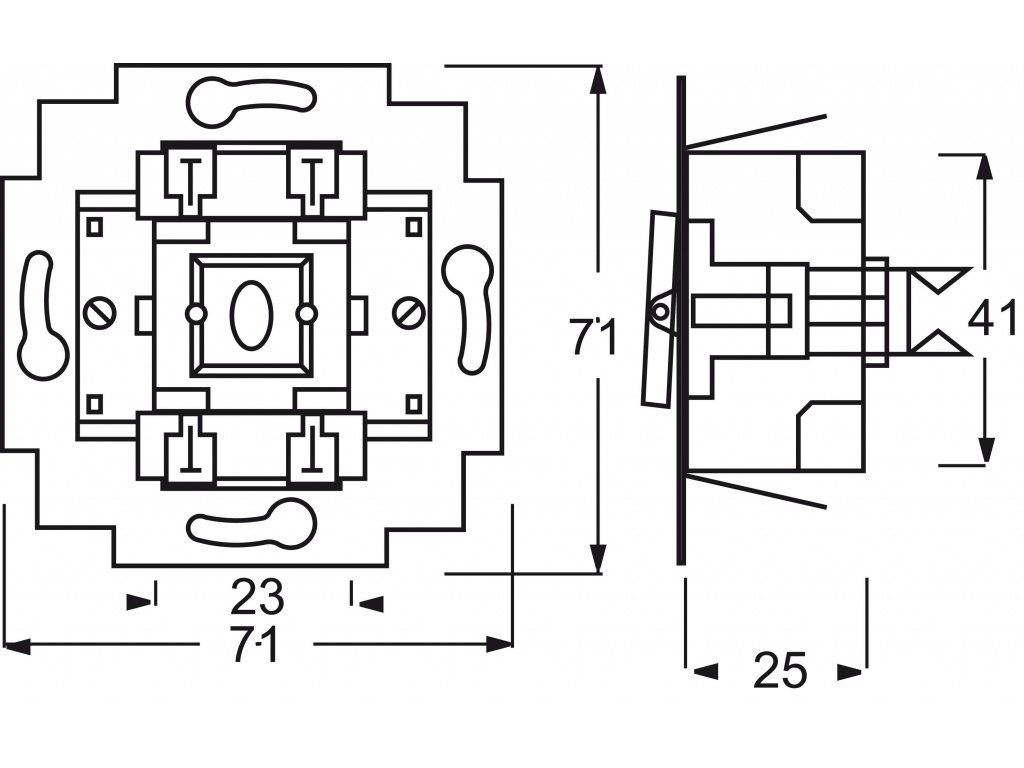 Deze wip-impulsdrukkersokkel is 1-polig en heeft 1 maakcontact. Dit is geen standaard schakelaar. De impulsdrukker maakt (of verbreekt) het contact als de schakelaar ingedrukt wordt.