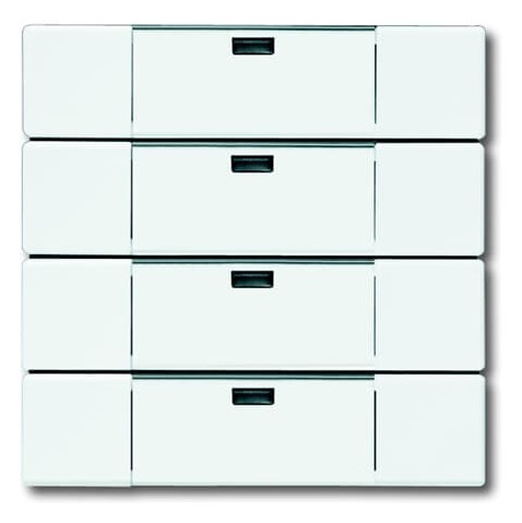 Netonafhankelijke 4-voudige wandzender. Met opschriftveld en opschriftlabel. Voor schakelen en dimmen. Voor jaloezie- en lichtscènebesturing. Er kunnen 4 radiokanalen worden bediend of maximaal 8 lichtscènes worden opgeroepen. Voor WaveLINE-inbouwactoren 6701-101, 6702, 6703, 6704 en 6705-101. Zendfrequentie: 868 MHz. Bereik: ongeveer 100 m (vrij veld). Voeding: Lithium knoopcel type CR2032. Levensduur van de batterij: typ. 5 jaar, dus praktisch onderhoudsvrij. Automatische bewaking van de levensduur van de batterij. Incl. montageplaat voor montage op gladde wanden of op schakelkasten. Batterij meegeleverd. Geschikte etiketteersoftware op www.BUSCH-JAEGER-Beschriftungstool.de.