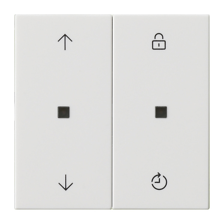 Deze eNet Memory bedieningstoets uit de Systeem 55 serie van Gira is geschikt voor het afdekken van Systeem 3000 relais-schakelaars, elektronische schakelaars, dimmers, neventoestellen en jaloeziebesturingselementen. Met de draadloze bedieningstoets kunt u handmatig, draadloos en tijdgestuurd jaloezieën, rolluiken, markiezen, verlichting of ventilatoren bedienen. Met dit eNet opzetstuk bedieningselement Memory met pijlsymbolen is het mogelijk zowel een om een tijd voor het omhoog en omlaag bewegen als een uitschakeltijd op te slaan. In Memory modus worden deze schakeltijden in een 24-uurs ritme herhaald. De vergrendelingsfunctie vergrendelt de neveneenheidbediening en deactiveert de Memory-modus. In de nachtmodus branden de status en functie LEDs niet continu, zo kunt u onverlicht slapen. Verder heeft de eNet draadloze bedieningselement-opzetstuk een statusterugmelding aan radiografische zender, statusindicatie met LED en evaluatie van neventoestelingangen.Functies in combinatie met jaloeziebasiselement: