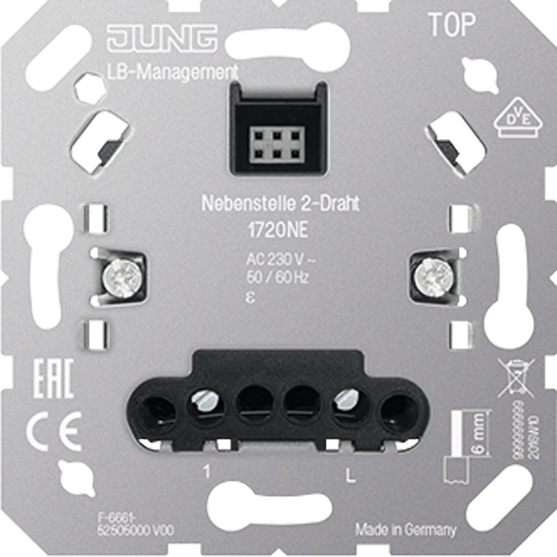 Dit neventoestel uit de LB Management serie van Jung is een tipneventoestel welke is geschikt als bediening van de nevenaansluiting van basiselementen met ingang neveneenheid uit LB Management. Zo is het toestel combineerbaar met Jung dimmer 1731 DD, 1711 DE, 1724 DM en UD 1755 REG. Daarnaast dient het neventoestel 3-draads te worden aangesloten. Het neventoestel dient ingebouwd te worden in een inbouwdoos conform DIN 49073. Dit LB Management neventoestel 1720NE vervangt Jung neventoestel 1220NE.