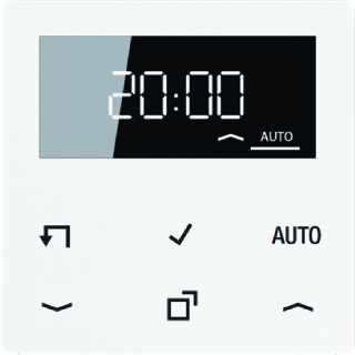 Deze LB Management jaloezie- en schakelklok display uit de A range van Jung is geschikt voor het handmatig en tijdgestuurd bedienen van jaloezieën, rolluiken, markiezen of verlichting. De timer, gekenmerkt door zijn echt glazen front met 6 tiptoetsen voor intuïtieve bediening, maakt de sturing van verlichting en zonwering bijzonder comfortabel. De timer Standaard met display kan worden gebruikt voor het afdekken van LB Management relais schakelaars, elektronische schakelaars, dimmers, neventoestellen en jaloeziebasiselementen. Deze stuurafdekking biedt gebruikscomfort op maat en zorgt voor een nog aangenamer, veiliger en zuiniger thuis. Voor snelprogrammering kan de actuele tijd kan als schakeltijd worden opgeslagen. Daarnaast heeft de jaloezie- en schakelklok een automatische zomer-/wintertijdomschakeling, welke uitschakelbaar is. Het schakelen bij zonsop- respectievelijk zonsondergang (astrofunctie) is voor 18 landen instelbaar, de astrotijdverschuiving voor zonsop- en zonsondergang is individueel ±2 uur aanpasbaar. Ook beschikt de LB Management timer Standaard metdisplay over een sperfunctie. Deze biedt bescherming tegen ongewenst buitensluiten: als de sperfunctie is geactiveerd is dat zichtbaar op het display. Na 2 minuten schakelt het display automatisch uit of toont permanent de tijd. Bij spanningsuitval blijven datum en tijd vier uur lang opgeslagen. Alle andere waarden zijn beschermd tegen stroomuitval opgeslagen.