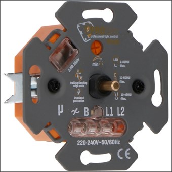 Draai/drukknop dimmer, 3-450W, 230V, Inbouw, Universeel en LED retrofit, Grijs, Geschikt voor LED, IP20,