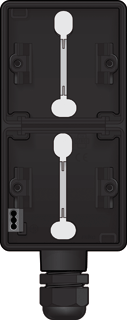Opbouwbak inbouwschakelmateriaal, 2-voudig, Verticaal, Zwart, RAL9005, Mat, Thermoplast, IP55, Bodemdeel: Einddoos, Uitvoering: Wartel, 1xM20 ond, vert.